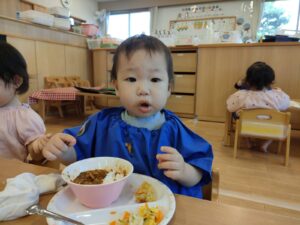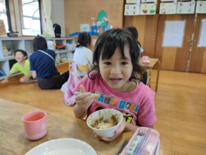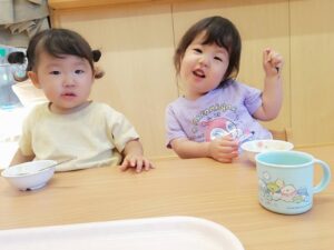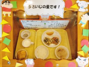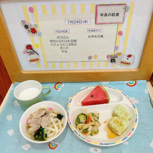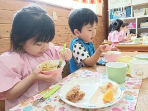 子どもたちの心と身体が健やかに育つためには、「食」が重要です。当園では管理栄養士が作成した、栄養のバランスが取れた献立による給食を提供しています。さらに季節の伝統行事にちなんだ献立も組まれ、「食」文化を通して豊かな心を育むことをとともに、食卓を囲む楽しさも伝えています。
