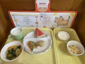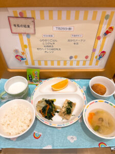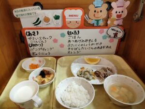 食物アレルギーのある子には、医師の診断書・指示書をもとに、除去食・代替食を提供しています。