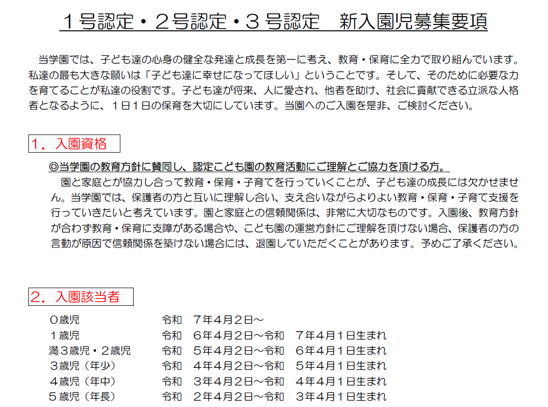 お急ぎの場合は、各園に直接お電話くださいますようお願いいたします。