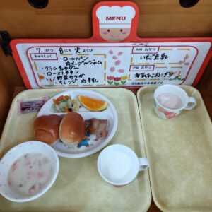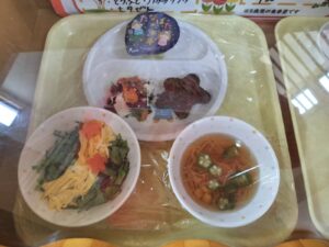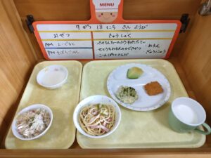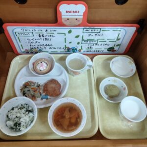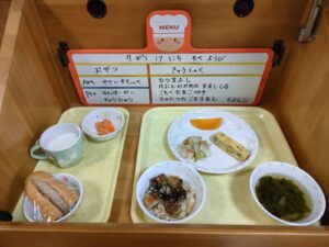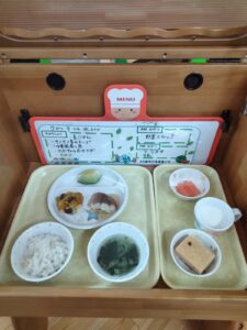 こんにちは!ふたばこども園から今日の給食を紹介します☆ 午前中は元気に園庭で遊んでいた